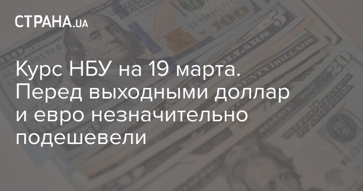 Национальный банк Украины в пятницу, 19 марта, установил официальный курс гривны по отношению к иностранным валютам. По сравнению с предыдущим рабочим днем доллар и евро синхронно упали в цене.
