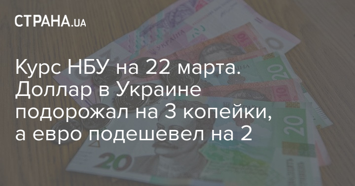 Курс НБУ на 22 марта. Доллар в Украине подорожал на 3 копейки, а евро подешевел на 2