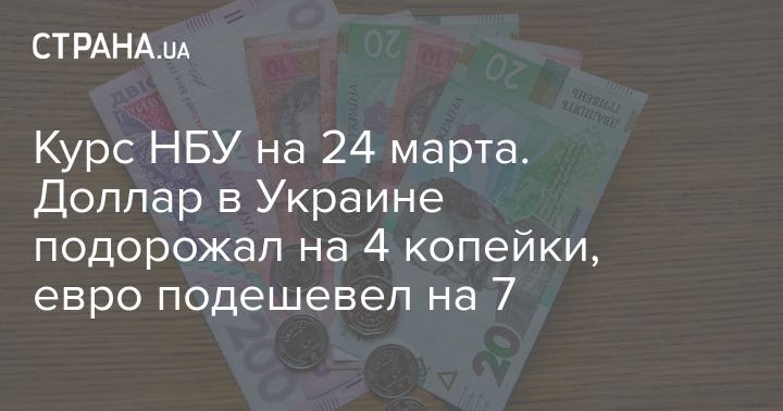 Курс НБУ на 24 марта. Доллар в Украине подорожал на 4 копейки, евро подешевел на 7