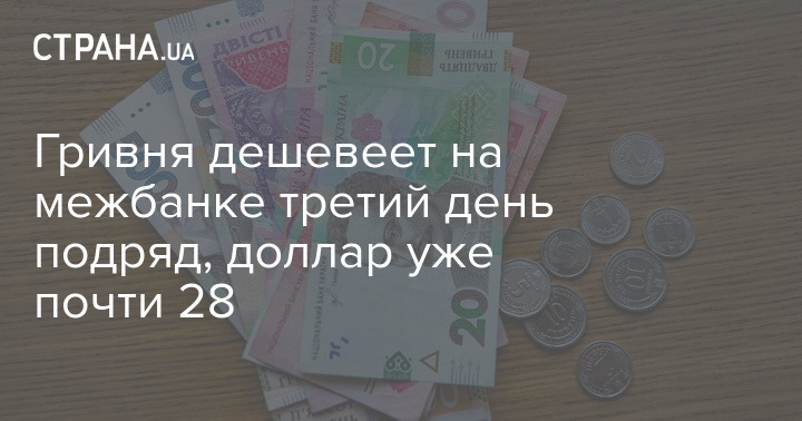 Гривня дешевеет на межбанке третий день подряд, доллар уже почти 28