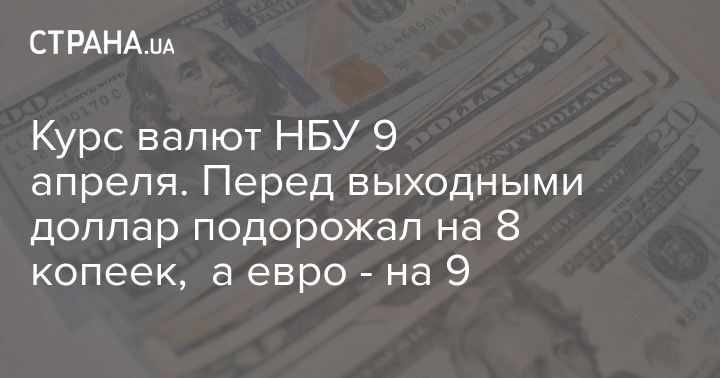 Курс валют НБУ 9 апреля. Перед выходными доллар подорожал на 8 копеек, а евро - на 9