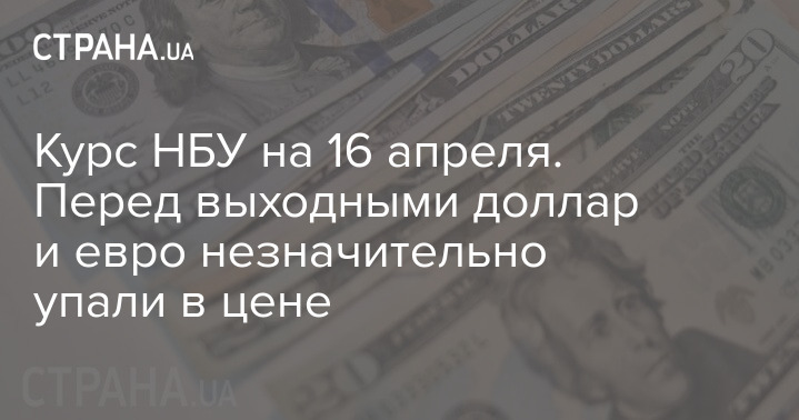 Национальный банк Украины в пятницу, 16 апреля, установил официальный курс гривны по отношению к иностранным валютам. По сравнению с предыдущим рабочим днем доллар и евро упали в цене.