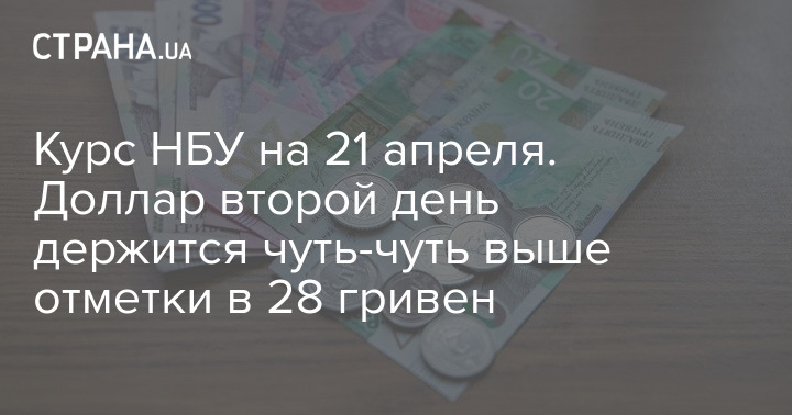 Курс НБУ на 21 апреля. Доллар второй день держится чуть-чуть выше отметки в 28 гривен