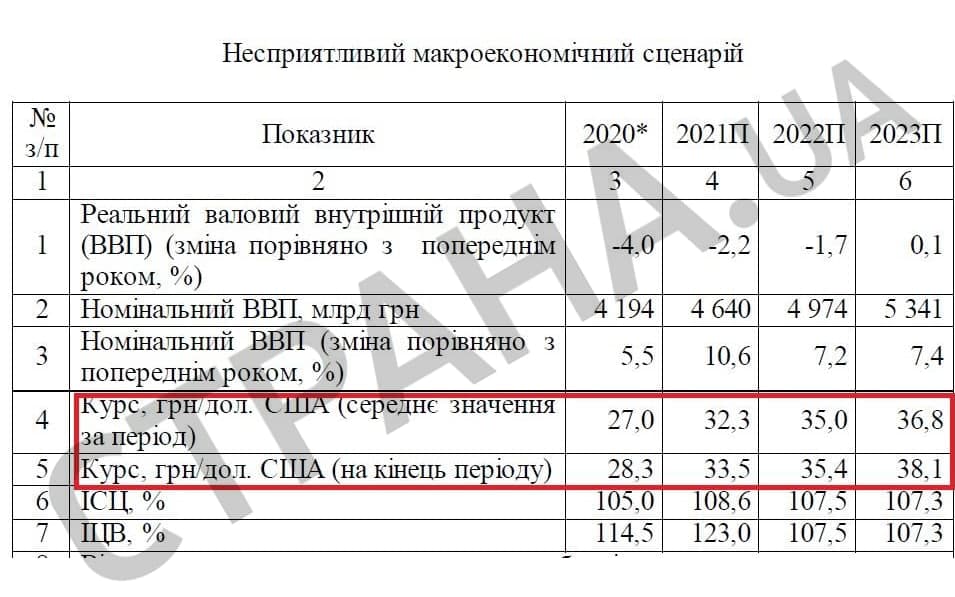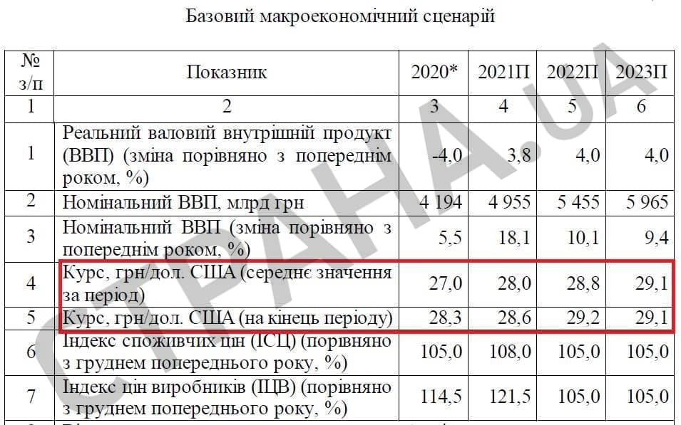 • снижение курса гривны к доллару: в 2021 году — на 3,6%, в 2022 году — на 2,8%.