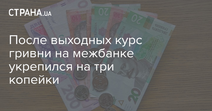 В первый рабочий день недели, 19 июля, на межбанковском валютном рынке курс гривни укрепился на три копейки - до 27,210 грн за один доллар с 27,245 грн/$1 перед выходными.