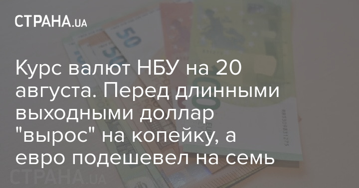 Курс валют НБУ на 20 августа. Перед длинными выходными доллар "вырос" на копейку, а евро подешевел на семь