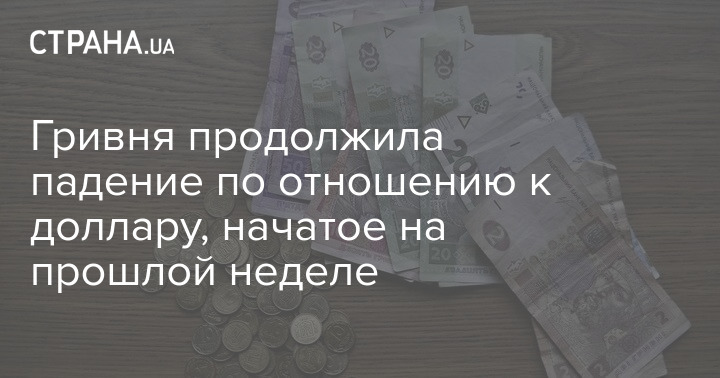 Гривня продолжила падение по отношению к доллару, начатое на прошлой неделе
