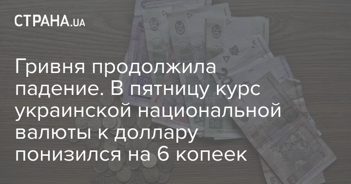 Гривня продолжила падение. В пятницу курс украинской национальной валюты к доллару понизился на 6 копеек