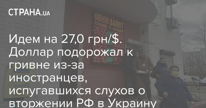 "Нерезидентов не на шутку перепугала новость Bloomberg об увеличении численности российских военных на границе с Украиной и об ожидаемом вторжении в нашу страну. Ее разгоняли во многих западных СМИ, но больше всего торговцы впечатлялись сообщениями в Bloomberg. Там такие новости задвигали активно. При этом нужно понимать, что западные инвестфонды не только читают новости в Bloomberg, но также торгуют в этой системе - это еще и торговая площадка. Потому, когда на полях постоянно всплывают тревожные сообщения по стране, в активы которых были вложения, это подстегивает сброс бумаг и вывод капитала. Обстановка нагнетается все сильнее и сильнее. Если ничего не изменится, то скоро придем к 27,0 грн/$", - объяснил "Стране" директор казначейства крупного банка.