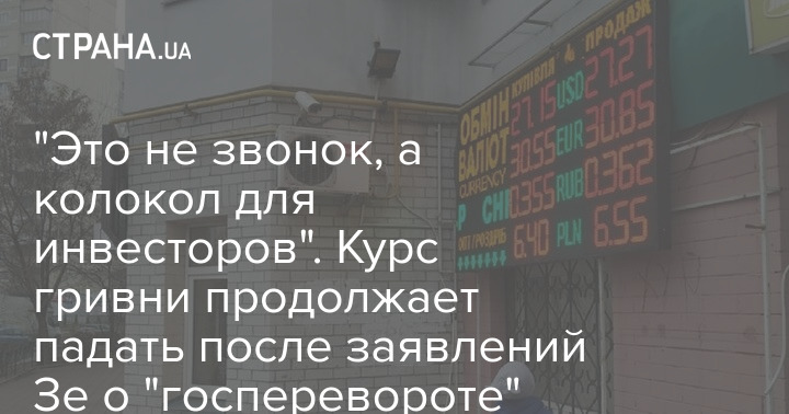 "Это не звонок, а колокол для инвесторов". Курс гривни продолжает падать после заявлений Зе о "госперевороте"