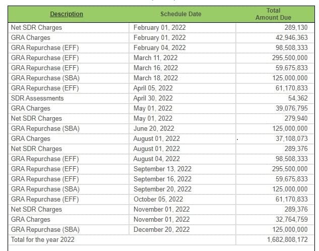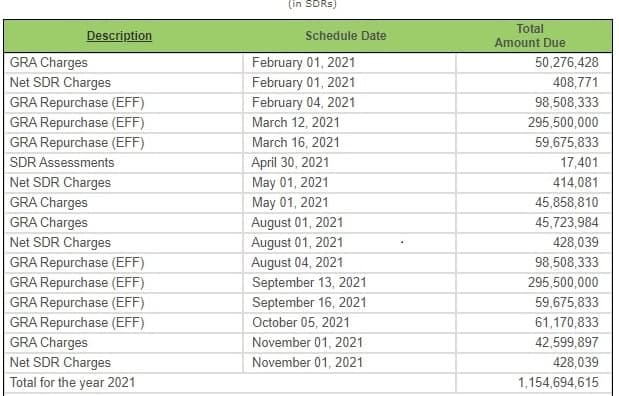 Как видно, пики выплат приходятся на март и сентябрь этого года, когда нужно выплатить МВФ каждый раз по $672,3 млн.