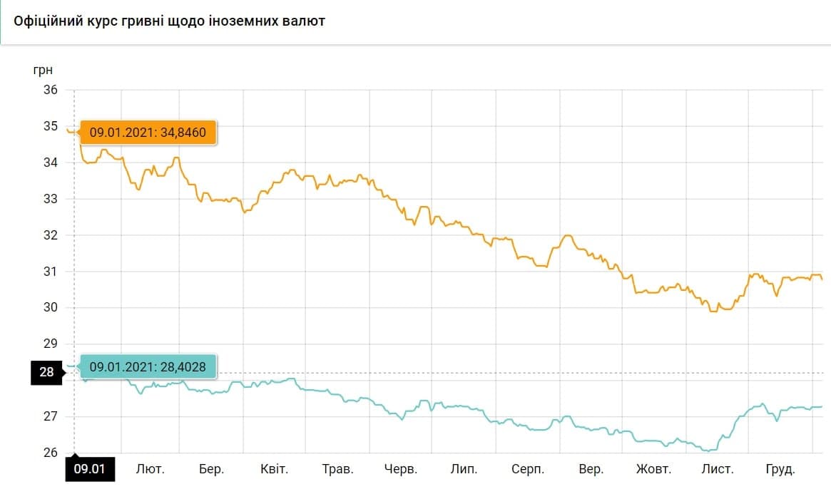 Это намного выше последних уровней межбанка: 2021 год он закончил в рамках 27,32-27,34 грн/$, а в начале 2022-го уже начал штурмовать отметку 27,50 грн/$, о чем писала "Страна". Тем не менее диапазон 28,6-28,7 грн/$ считается базовым для власти, и его учитывает бизнес. Даже притом, что на протяжении всего прошлого года гривна ни разу не достигала этих значений. В 2021-ом максимальный курс был зафиксирован 9 января, и это была отметка 28,4 грн/$, а после в течение всего года он находился ниже, что подтверждается данными Нацбанка.