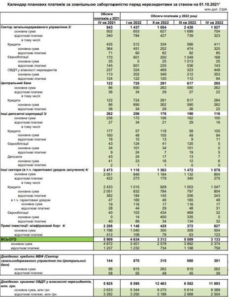 Не менее важный фактор — это выплаты по долгам. Украине придется платить кредиторам больше по ряду направлений. Например, МВФ наша страна должна выплатить в 2022 году $2,4 млрд (1,7 млрд в специальных правах заимствования, SDR, — это валюта МВФ). График такой.