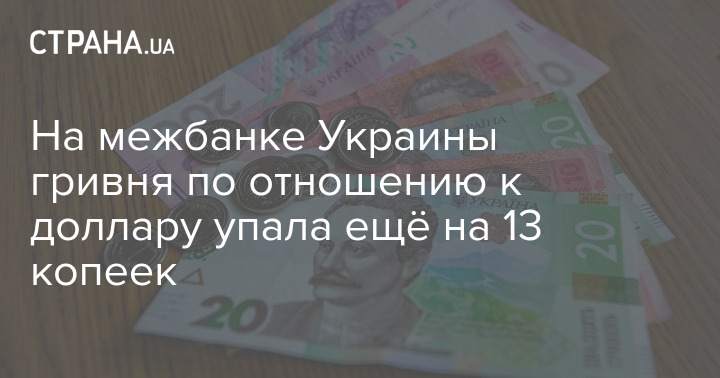 На межбанке Украины гривня по отношению к доллару упала ещё на 13 копеек