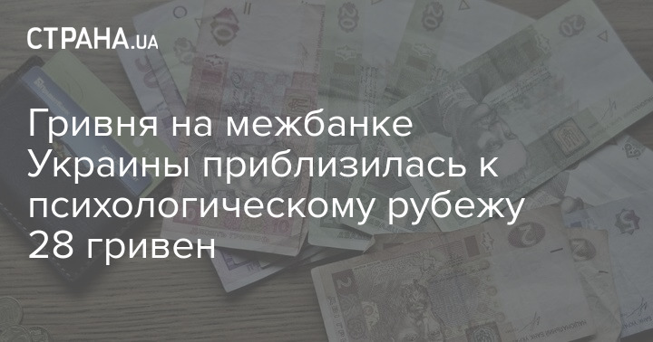 Гривня на межбанке Украины приблизилась к психологическому рубежу 28 гривен