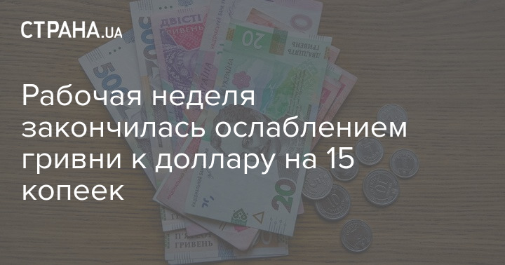 Рабочая неделя закончилась ослаблением гривни к доллару на 15 копеек