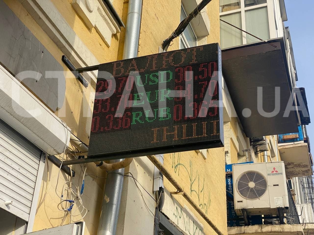 В разных обменниках - своя цена продажи - от 30,00 до 30,69 грн. Причем в одном из них стоимость доллара (продажа) поднялась на 20 пунктов за 20 минут (на фото ниже).