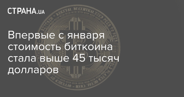 Впервые с января текущего года стоимость биткоина превысила отметку в 45 тысяч долларов за монету.