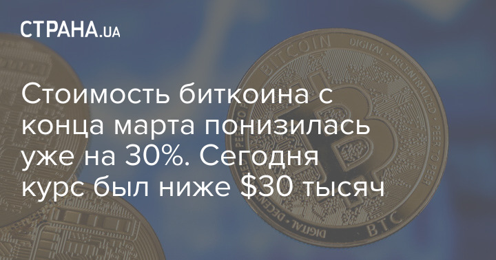 Стоимость биткоина с конца марта понизилась уже на 30%. Сегодня курс был ниже $30 тысяч
