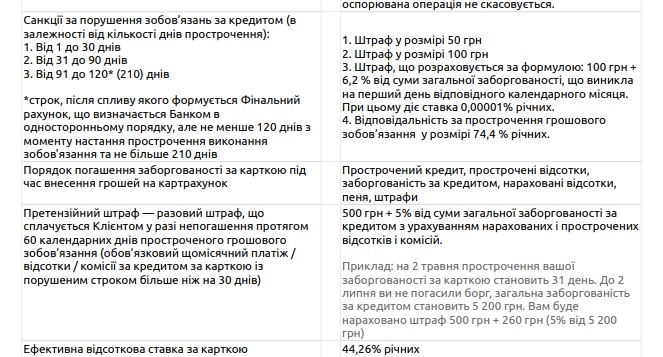 При льготной ставке в 1,6% Моно официально подтверждал реальную годовую кредитную ставку по своей черной карте на уровне 21,02% годовых. При кредитном лимите на уровне 10 тыс. грн и минимальном платеже 400 грн/месяц до 30 июля человек должен был переплатить 1,7 тыс. грн.