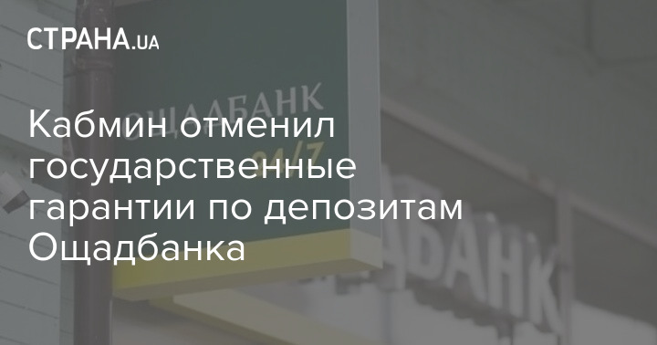Кабмин официально отменил государственные гарантии по депозитам физлиц в государственном Ощадбанке, которые действовали с момента его основания в декабре 1991 года.