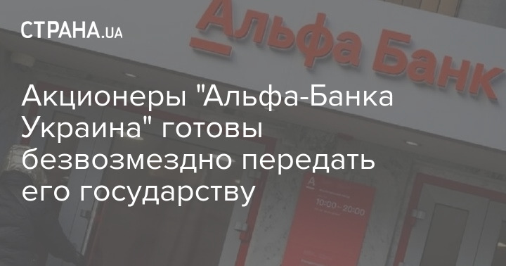 Акционеры "Альфа-Банка Украина" готовы безвозмездно передать его государству