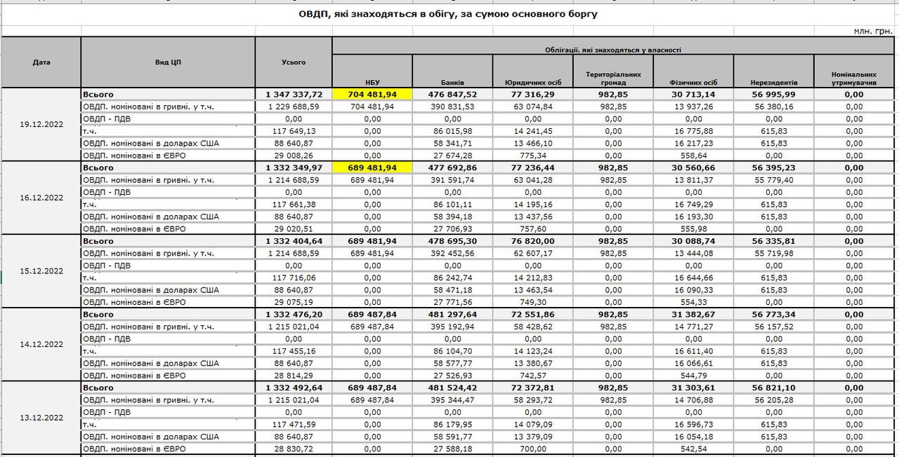 Средства потребуются немалые, как до конца 2022 года, так и в начале 2023-го. Причем, речь не только о покрытии текущих бюджетных потребностей страны, но и о погашении старых выпусков ОВГЗ. Его объем превысит вышеупомянутые 15 млрд грн.