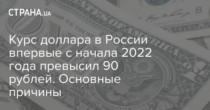 Курс доллара в России превысил 90 рублей впервые с марта 2022 года.