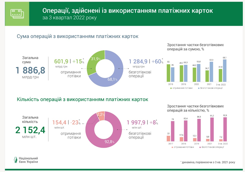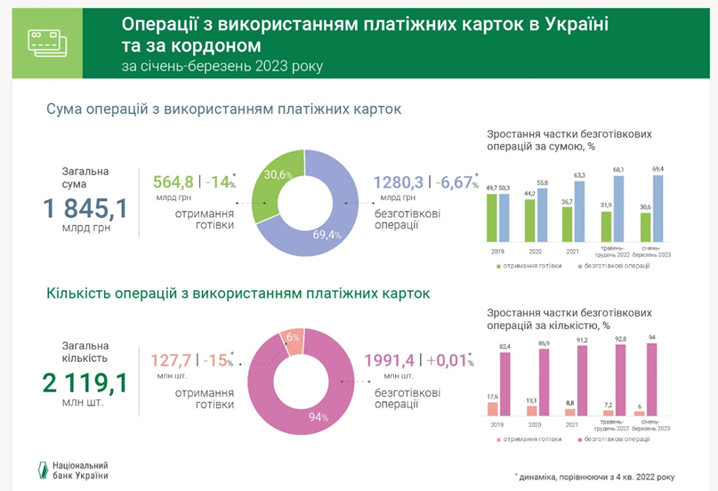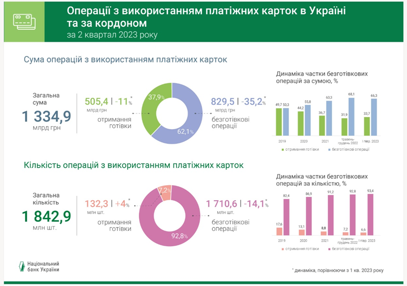 Регулятор сообщил, что во втором квартале 2023 года население совокупно осуществило значительный объем карточных операций (безналичные расчеты + снятие наличных) в Украине и за границей: