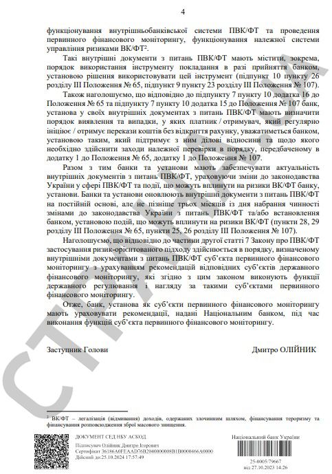 Письмо от НБУ