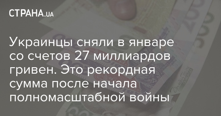Украинцы сняли в январе со счетов 27 миллиардов гривен. Это рекордное снятие сбережений после введения в Украине военного положения 24 февраля 2022 года.