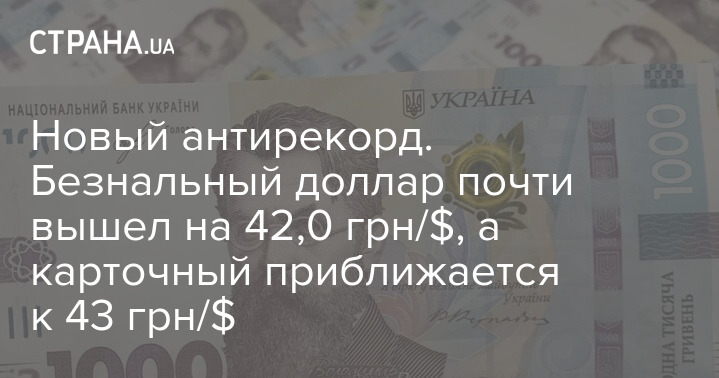 Новый антирекорд. Безнальный доллар почти вышел на 42,0 грн/$, а карточный приближается к 43 грн/$
