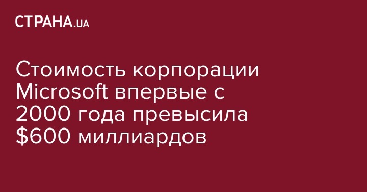 Стоимость корпорации Microsoft впервые с 2000 года превысила $600 миллиардов
