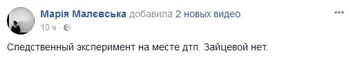 "Следственный эксперимент на месте ДТП. Зайцевой нет", - написала она.