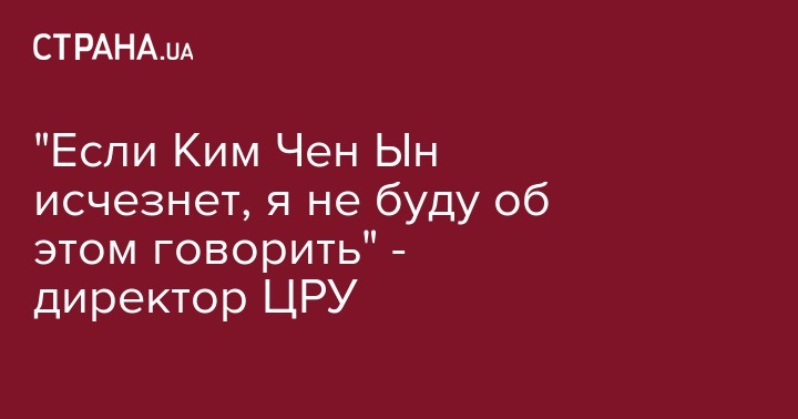 "Если Ким Чен Ын исчезнет, я не буду об этом говорить" - директор ЦРУ