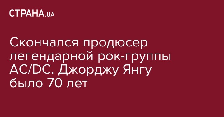 В Австралии скончался продюсер легендарной рок-группы AC/DC, гитарист группы Easybeats и один из самых известных австралийских музыкантов Джордж Янг. Об этом сообщается на сайте AC/DC.