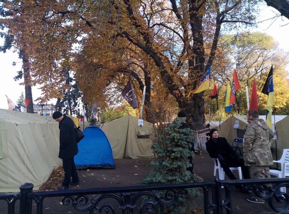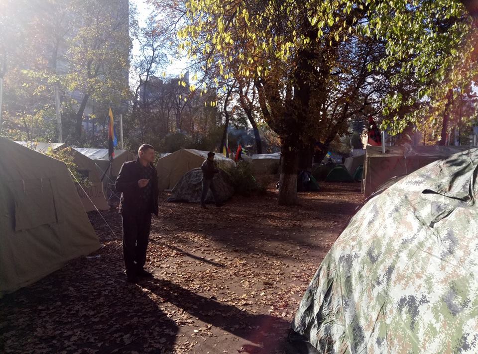 На МихоМайдане с утра понедельника, 23 октября, продолжается стояние палаточного городка. Об этом передает корреспондент "Страны".
