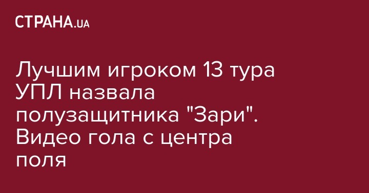 Лучшим игроком 13 тура УПЛ назвала полузащитника "Зари". Видео гола с центра поля