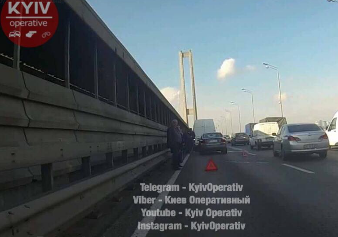 В понедельник, 23 октября, на Южном мосту в Киеве образовалась пробка из-за ДТП. Об этом в Facebook пишет Киев Оперативный.