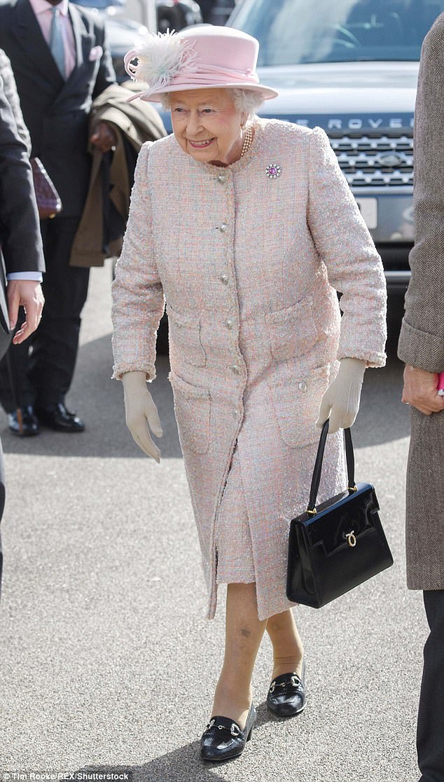 Королева наблюдала за скачками с серьезным видом и в очках. А в неформальной обстановке широко улыбалась, демонстрируя на губах новый розовый оттенок помады, удачно подобранный под тон ее пальто.