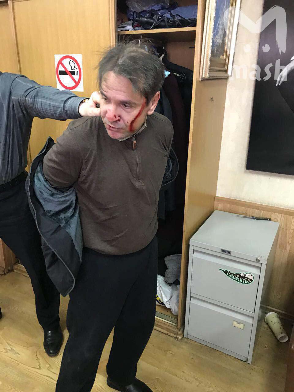 Охрана "Эха" слегка помяла мужика во время задержания. У него глубокий порез на щеке Фото: Telegram-канал Mash