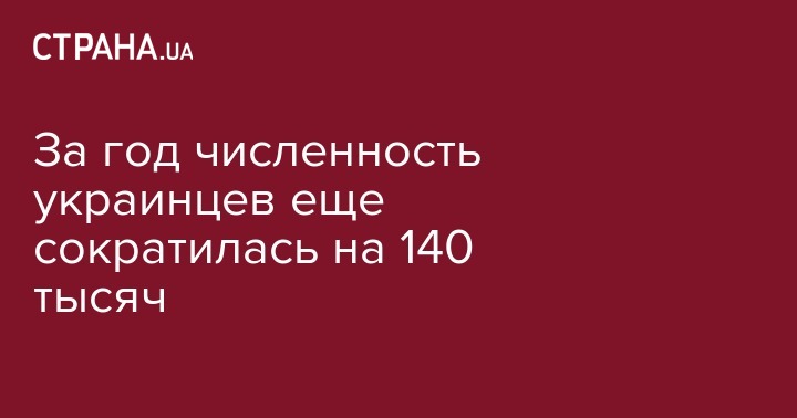 С начала года численность населения Украины сократилась на 139 600 человек. Об этом говорится в расчетах на сайте Государственной службы статистики.