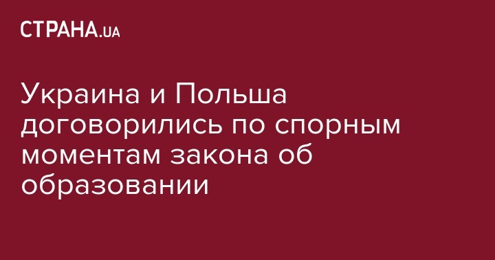 Украина и Польша нашли взаимопонимание в отношении закона об образовании в Украине в части языков национальных меньшинств.