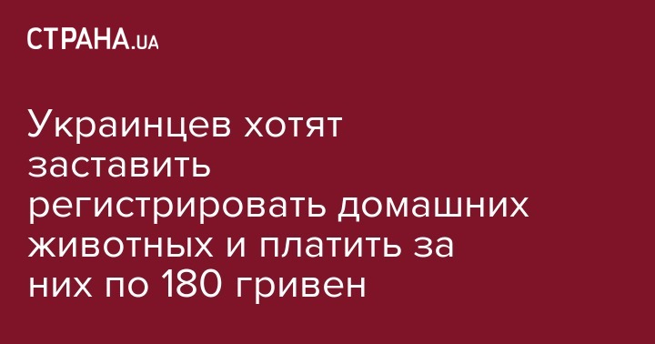 Украинцы, у которых живут коты и собаки, должны будут заплатить новый сбор - 180 гривен. Исправление технических ошибок, допущенных при регистрации животного, обойдется в 70 гривен.