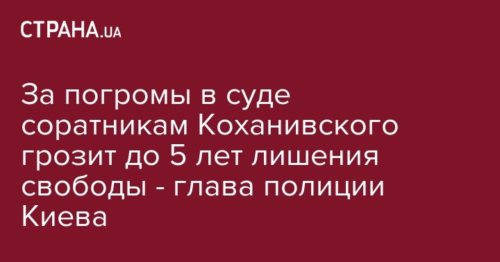 "В настоящее время мы открыли производство по статье 194 (УКУ - ред.), это повреждение имущества, там до 5 лет лишения свободы, но мы еще документируем, будем давать правовую оценку сопротивления действиям сотрудников полиции, другие статьи", - сказал начальник Нацполиции в Киеве Андрей Крищенко