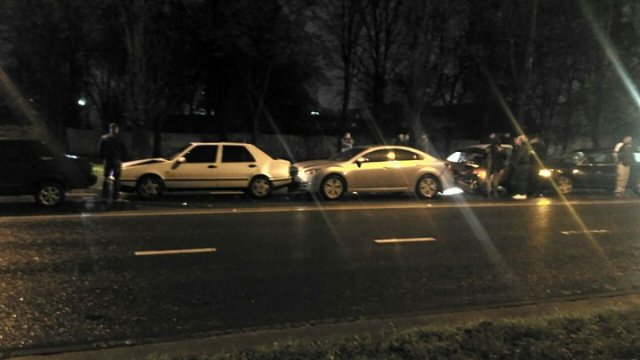 В понедельник вечером, 23 октября, во Львове на улице Липинского произошло массовое ДТП, которое спровоцировал пьяный водитель на Volkswagen Passat. В аварию попали 5 автомобилей.