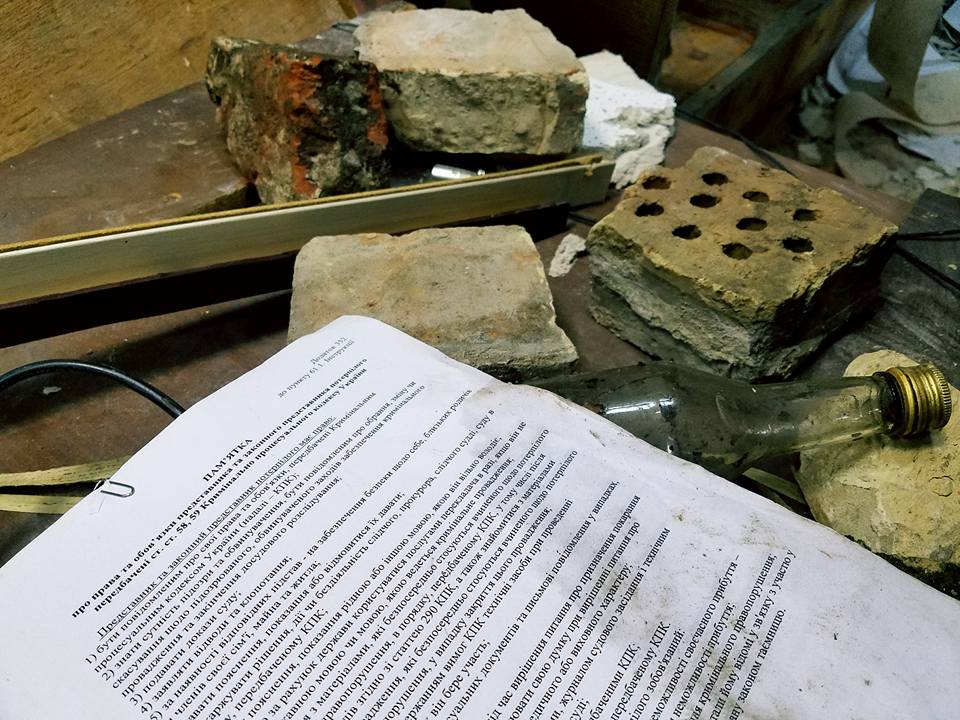 В здании был настоящий погром, документы валяются вперемешку с кусками кирпича, которые активисты принесли для сопротивления правоохранителям.