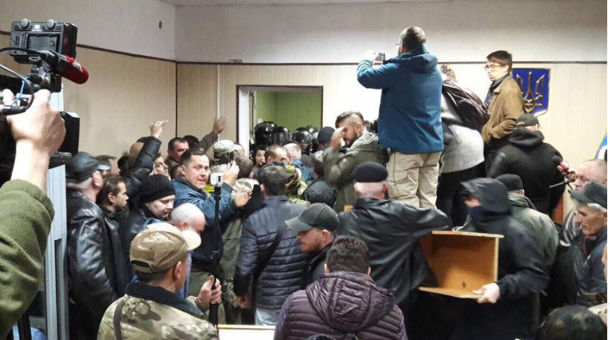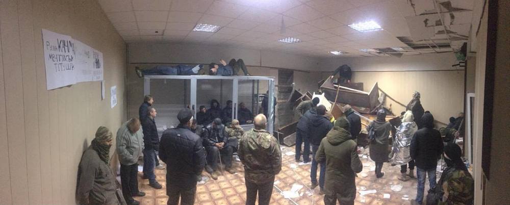 После двух попыток штурма забаррикадировавшихся активистов зал суда был совершенно непригоден для продолжения заседания.