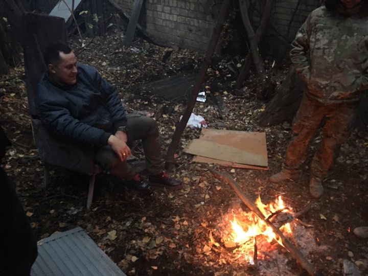 На улице активисты грелись у костра. Огонь поддерживали в том числе обломками мебели из суда.
