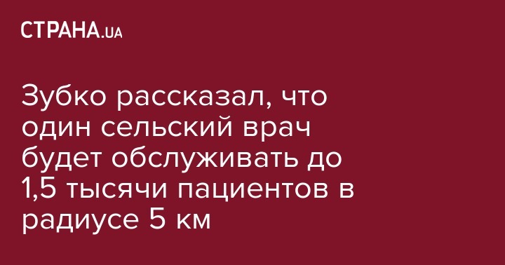 Зубко рассказал, что один сельский врач будет обслуживать до 1,5 тысячи пациентов в радиусе 5 км